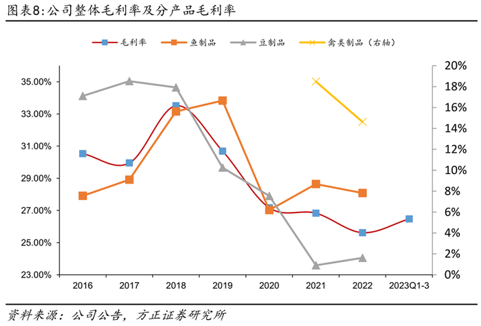 2)毛利率:公司为大单品战略,规模效应下生产效率不断提升,同时采购端更有优势,鱼制品进入现代渠道及新品深海鳀鱼放量均会带动毛利率提升。