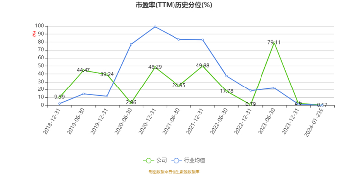 市盈率为负时,不显示当期分位数,会导致折线图中断。