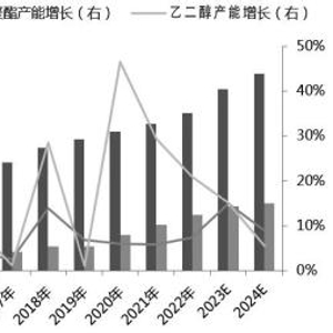 图为乙二醇和聚酯产能增长情况(单位:万吨)