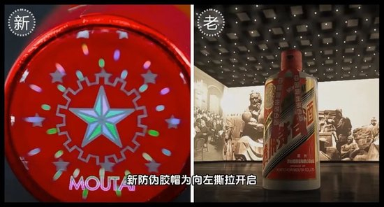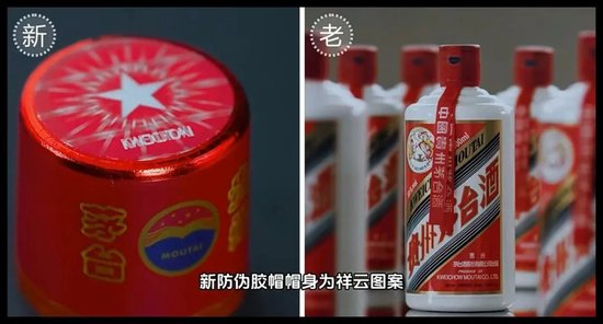 在胶帽设计上,从向右撕拉开启变为向左撕拉开启,杜绝了不法分子回收胶帽以伪造茅台酒的隐患。