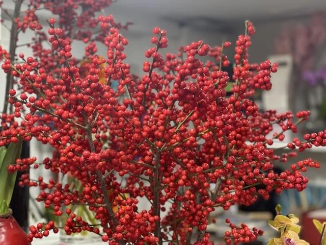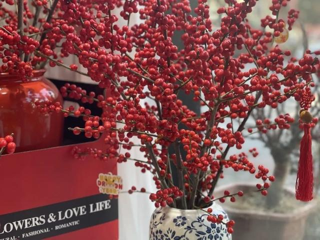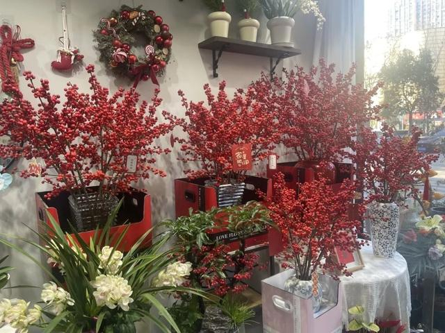 “北美冬青是近两年流行的年宵花,它春天发芽,冬天结果,寓意一路长‘红’,很适合现在的季节,它的价格是根据品相和长度来的,我们店的冬青70-80元一支。”店主说。