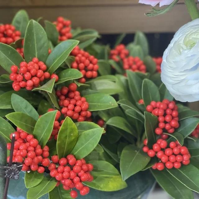 北美冬青果红而繁密,颜色喜庆,抗寒能力较强,冬季只要温度高于5℃,植株便能照常长出鲜叶,鲜切北美冬青要注意常换水。