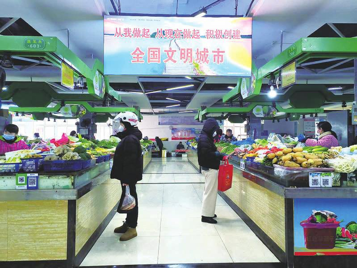 顾客在池州毓秀门农贸市场买菜。