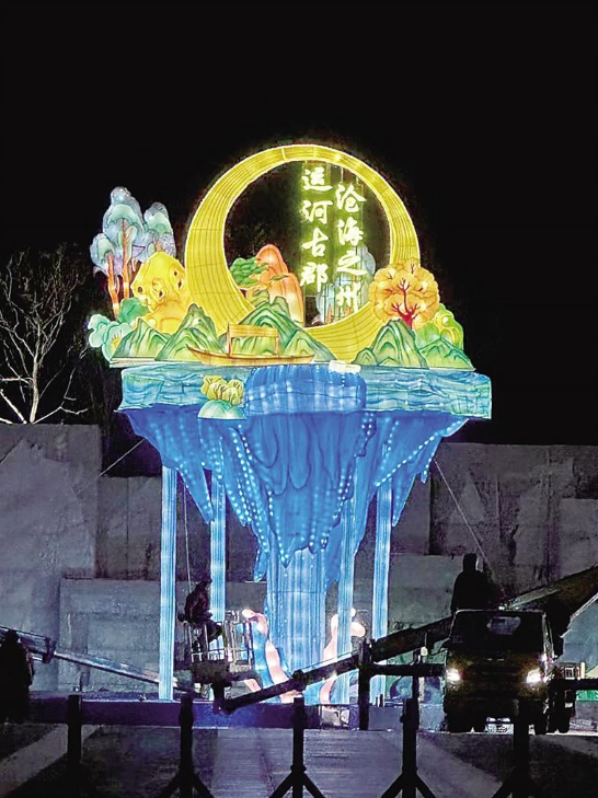 最令人期待的要数沧州园博园的大运河(沧州)首届新春灯会。随着来自四川自贡的彩灯工匠们手工打造的各色彩灯进场,工人正忙着搬运和安装,越来越多的灯组呈现出最终造型,“龙耀沧州”“运河古郡”“童心飞扬”“开年大集”四个主题板块各具特色。