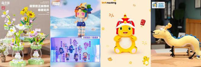 值得一提的是,除了联名,这些IP因其形象、内容类型等因素,在授权衍生品,尤其是玩具潮玩赛道也表现不俗。例如"萌芽熊"和哲高积的联名积木产品;"迷你世界"的各类联名盲盒产品;"奶龙""龙爸"的毛绒产品等等。