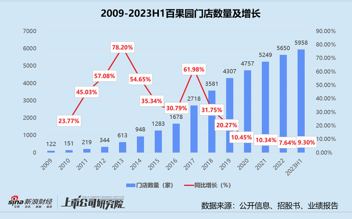 往期公开数据显示,自2017年开始,百果园的门店数量增速便已明显放缓,2022年和2023年上半年连续2个报告期增长不足10%。根据招股书披露的加盟数据推算,新增门店和关闭门店数量比例由2019年的5.59降至2022年上半年的1.87。换而言之,每新开1-2家门店,就会有1家门店清算关闭。