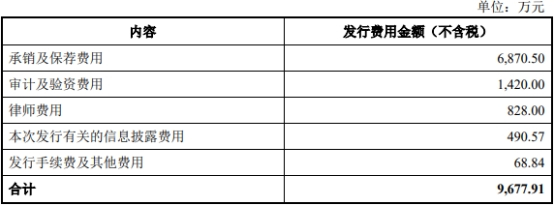 盛景微本次公开发行新股的发行费用总额为9,677.91万元(不包含增值税),其中承销及保荐费用6,870.50万元。