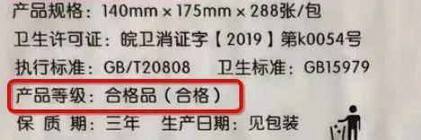 纸巾分为合格品、一等品、优等品,等级越高吸水性和柔韧性越好。记者看了很多编号、原料都正常的纸巾,但等级却是“合格品”,这是纸巾等级中最差的。
