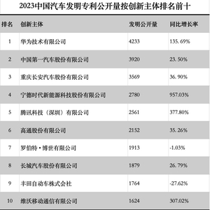机构发布2023年中国汽车发明专利公开量数据,排名第一的不是汽车公司
