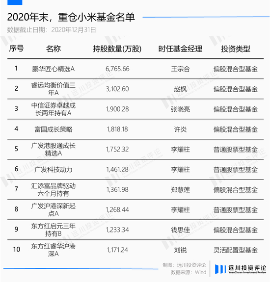 遗憾的是,翻开重仓小米的基金名单,却鲜有选股型基金经理的身影,少有的几个主观基金经理如广发的刘彬、中欧的钱亚风云也只是在四季度姗姗来迟。反倒是一众被动配置的指数型基金将小米这一年的涨幅收入囊中。