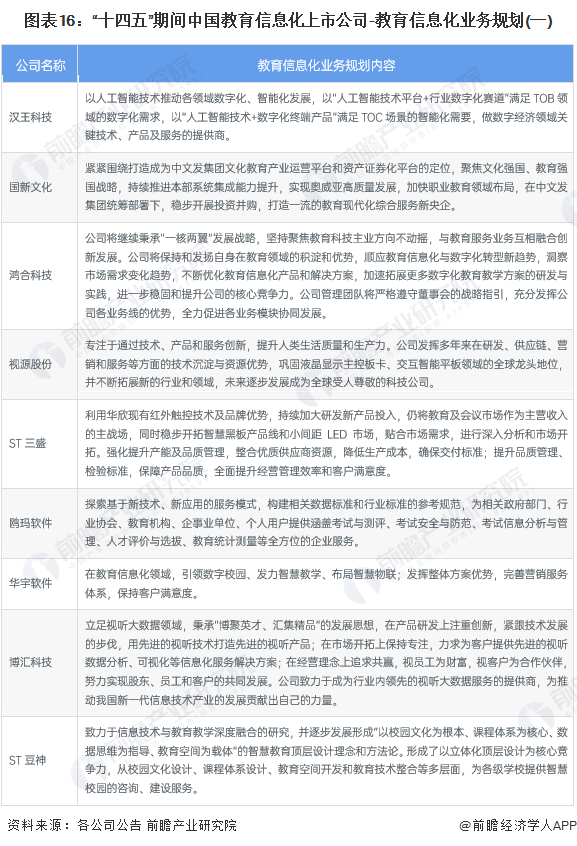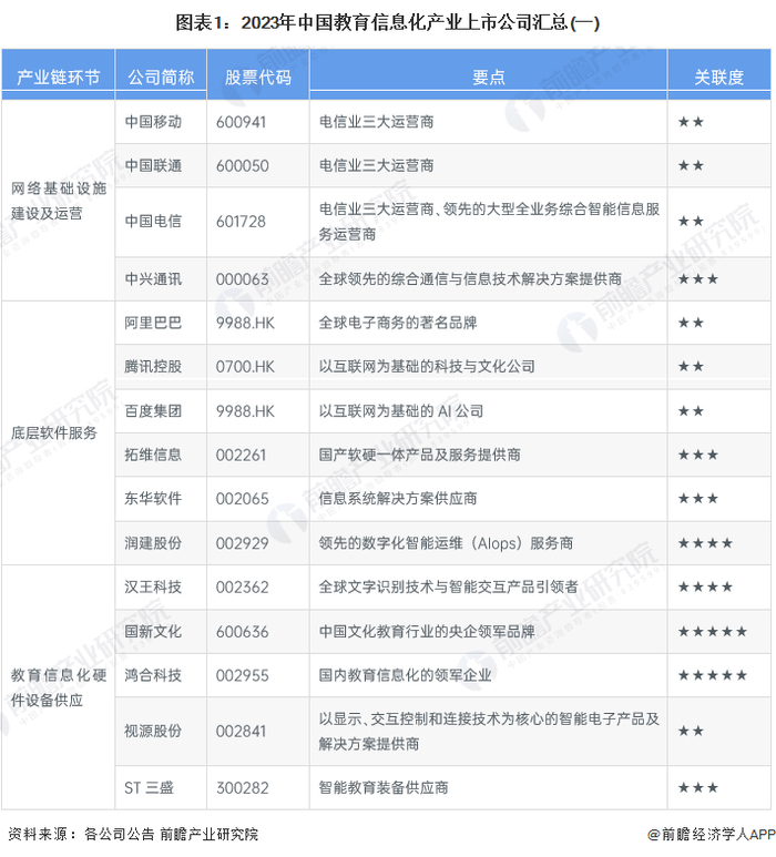 1、教育信息化产业上市公司汇总