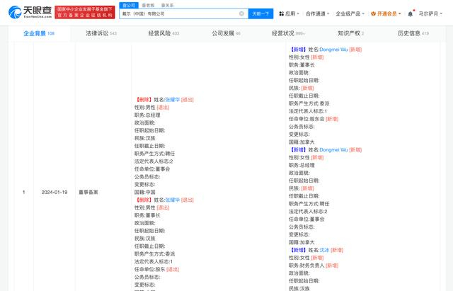 中国经济周刊-经济网讯 天眼查App显示,近日,戴尔(中国)有限公司发生工商变更,张耀华卸任法定代表人、董事长、总经理,均由Dongmei Wu接任。该公司成立于1997年12月,注册资本2680万美元,由DELL ASIA HOLDINGS PTE.LTD全资持股。