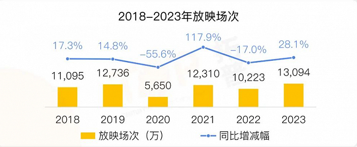 不过,值得欣喜的是,总放映场次同比上涨了28.1%,全年放映1.3亿场,创内地影史新高。这意味着每家影院和每块屏幕平均下来比以往放映了更多场次,影院坪效有所增长。