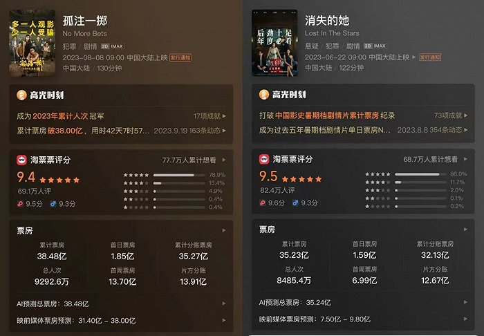 《报告》显示,观影频次2部以上占据21%,3部及以上的18%,与2019年的21%,20%基本持平。而且不同于2019年《哪吒之魔童降世》以一己之力拉动新用户入场,2023年从《消失的她》到《孤注一掷》,多部新片呈现接力式拉新。