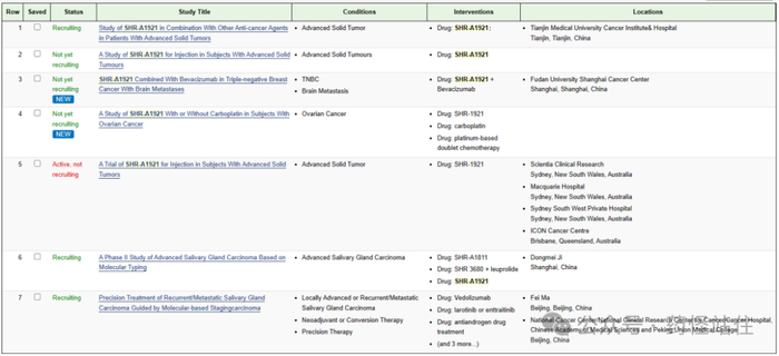 2024年1月19日, 恒瑞医药 Trop-2ADC-SHRA1921在ClinicalTrails登记网共登记7项临床研究。