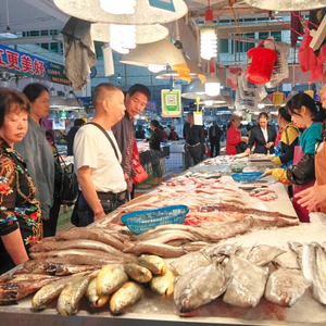 闸坡农贸市场,游客购买海鲜。梁文栋 摄