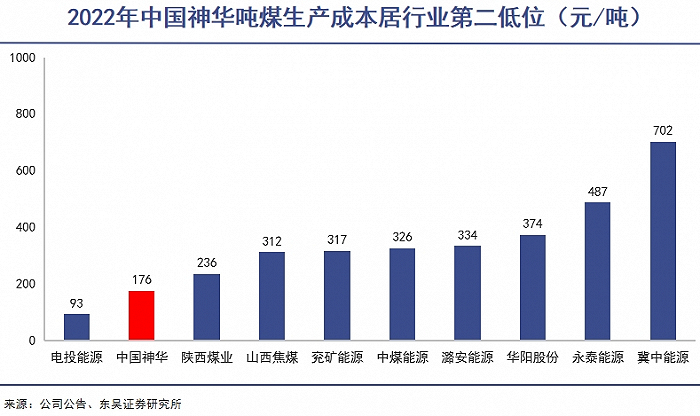 得益于资源集中以及矿产禀赋,2022年中国神华自产煤单位成本176.3元/吨,仅次于拥有露天煤业的电投能源。