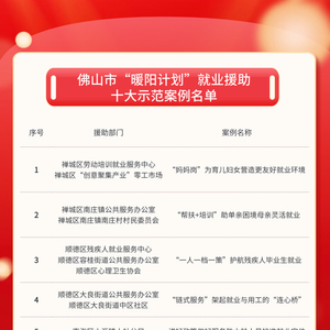 揭榜!佛山市“暖阳计划”就业援助十大示范案例