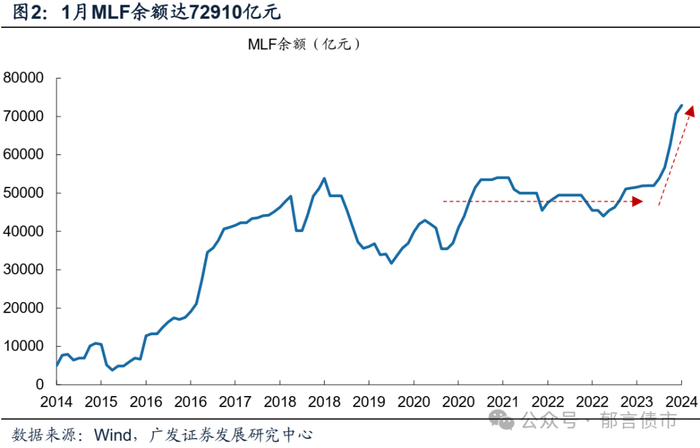 二是降准的两个效应。短期来看,降准有助于填补春节资金缺口。从往年春节数据推断,春节取现金规模在1.5万亿元左右,往年春节流动性安排多在1.3-2.3万亿元区间。央行在2月5日实施降准,距除夕三个工作日,可以有效填补春节前取现金带来的资金缺口。站在中期维度,2023年8月以来,逆回购余额多在1万亿元+的高位震荡,MLF余额也从去年8月末的51950亿元升至今年1月的72910亿元,这显示出基础货币缺口主要由MLF和逆回购来进行填补(其次是2023年9月央行降准0.25%释放约5000亿元资金)。此次降准有助于填补长期资金缺口,同时可能降低逆回购等短时资金需求。