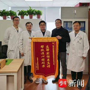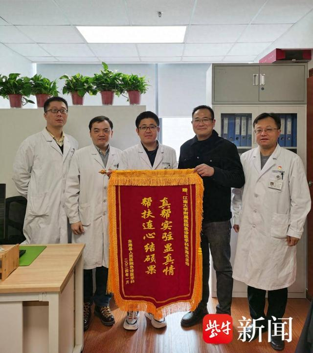 大寒节气,零下五摄氏度,无锡进入了一年中最寒冷的时刻,然而却没有挡住440多公里外的一份暖意。1月23日,来自连云港东海县人民医院急诊科主任王新文特意赶至无锡,向江南大学附属医院急诊科朱海杰医生送上锦旗,感谢他对医院半年的辛劳付出。