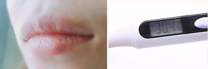 涂抹后,水分值飙升了一倍,而且肉眼就能看到嘴唇水润了~