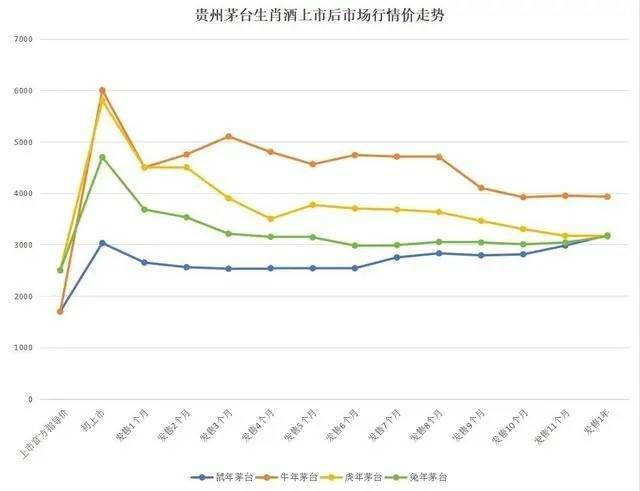 2014年,茅台首次推出马年生肖纪念酒,当时整个行业处于“限三公”之后的调整期,“马茅”起初没有在市场掀起太大波澜。直至2018年,狗年茅台生肖酒一经开售,市场突然出现抢购场面,连带着此前已推出的马、羊、猴、鸡各款生肖纪念酒价格,均水涨船高。其中尤以羊年、马年茅台生肖酒最贵,“马茅”接近2万元,“羊茅”更是突破3万元。