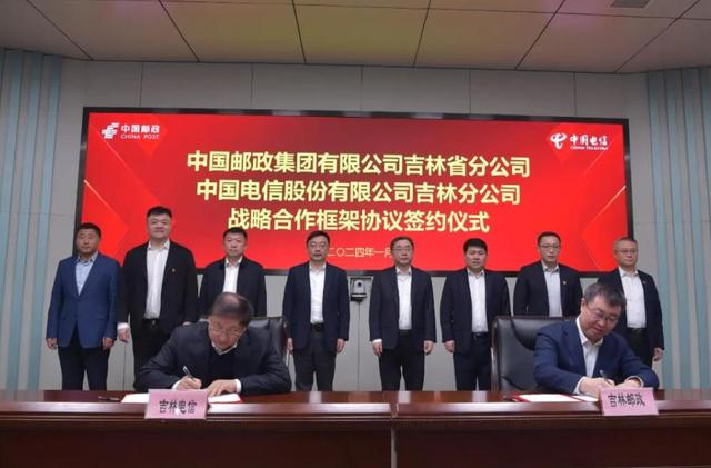 >>为切实发挥国企服务地方经济的主力军作用,近日,中国邮政集团有限公司吉林省分公司和中国电信股份有限公司吉林分公司签署战略合作框架协议,双方将积极探索基础通信业务合作、产业数字化业务、金融业务合作、寄递物流合作、渠道网点合作、乡村振兴等合作项目。