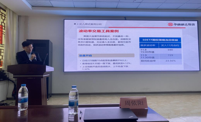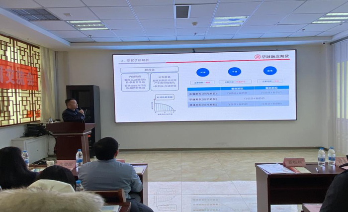 会上,华融融达期货西北分公司的朱星星、潘健,还针对市场上常用的期货交易软件功能进行了讲解,针对客户端以及手机端期权交易进行了仿真演示,使参会企业对期权交易有更深的了解。