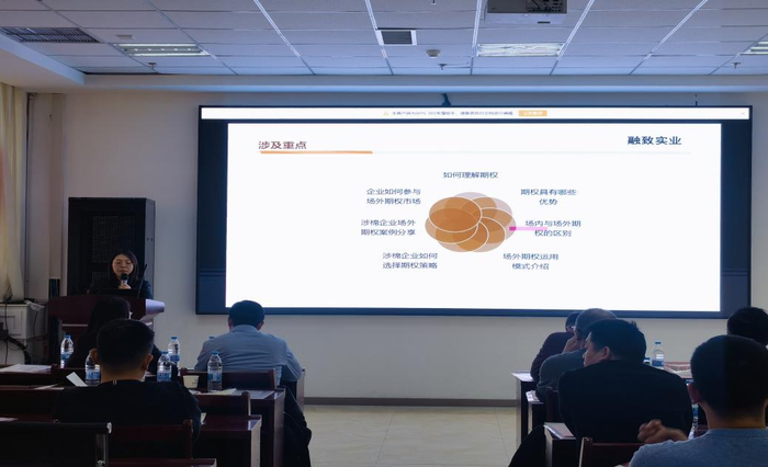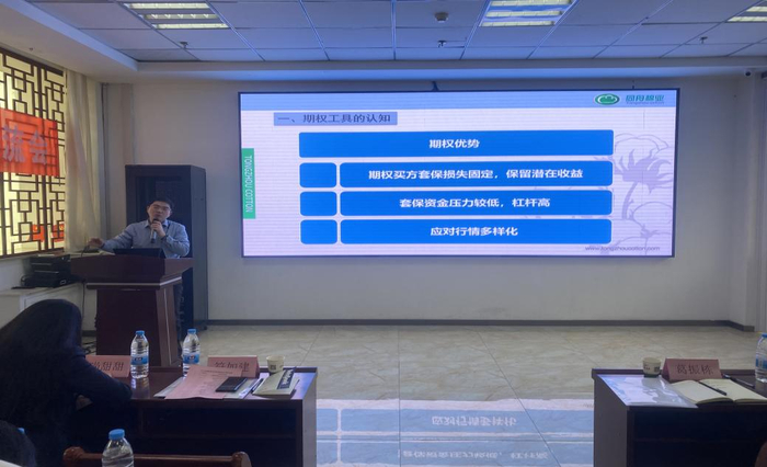 1月19日至20日,由华融融达期货西北分公司主办的“2024新疆涉棉企业棉花期权培训交流会”在新疆乌鲁木齐举办。本次会议邀请了棉纺产业链与期权专业人士,就棉花期权基础知识、期权进阶策略等进行了详细讲解,并对期权操作和结算风控业务中存在的相关问题进行了深入分析。此次会议的召开旨在更好地帮助涉棉企业稳健经营,利用期货及衍生品工具进行风险管理,实现降本增效。来自棉花产业链及期现类投资公司等30余家企业的约50名代表参会。