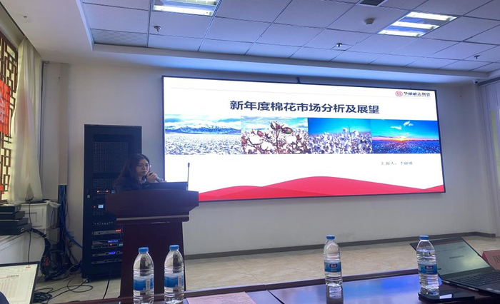华融融达期货西北分公司棉花研究员李淑娥在会议上,详细分析了当前棉花市场的基本面情况。2023年12月,全国棉花商业库存总量为553万吨,商业库存总量持续增加,目前已超过去年同期水平,为近五年次高点;同年12月底,纺织企业在库棉花工业库存量为88.66万吨。近期需求端有所回暖,下游去库速度较快,整体产业链运行偏良性。从影响未来棉花价格的因素看,2024年棉花种植面积或将下调,种植成本维持高位,这对棉花价格具有一定支撑作用。