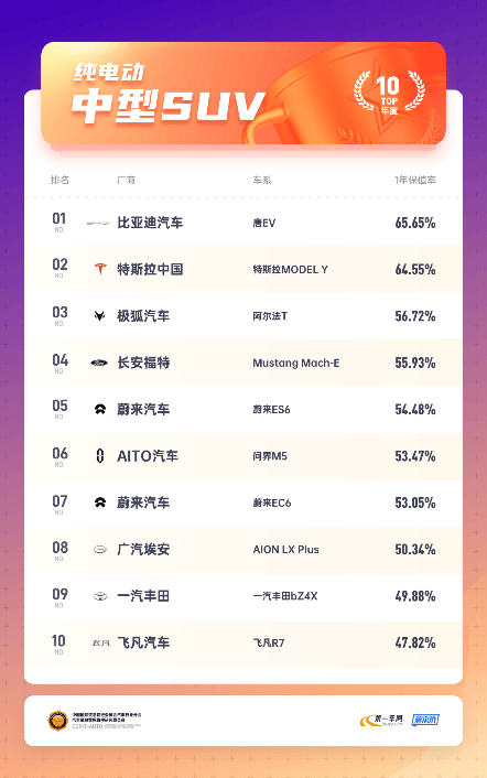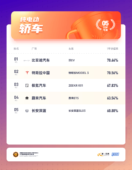 根据中国国际贸易促进委员会汽车行业分会汽车金融暨保值率研究委员会、蓝本价、第一汽车网三大权威机构及媒体联合发布的2024中国汽车保值率排行榜,中国品牌车型表现十分抢眼。其中,唯一一个拥有超过百万用户基数的中高端新能源IP——比亚迪汉唐,保值率相当惊喜。
