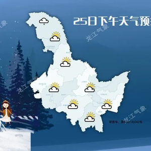 25日夜间最低气温:大兴安岭、伊春-28~-26℃,齐齐哈尔、大庆、双鸭山、鸡西-19~-17℃,其它地区-25~-23℃。