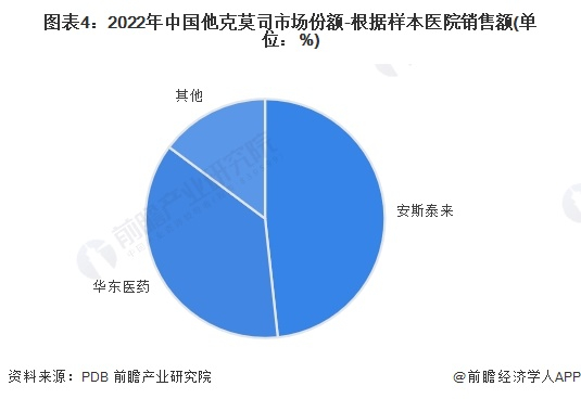 根据PDB披露的数据,2022年,他克莫司在样本医院的销售额中,安斯泰来和华东医药占比最高,其中安斯泰来占比超48%,华东医药占比近37%。