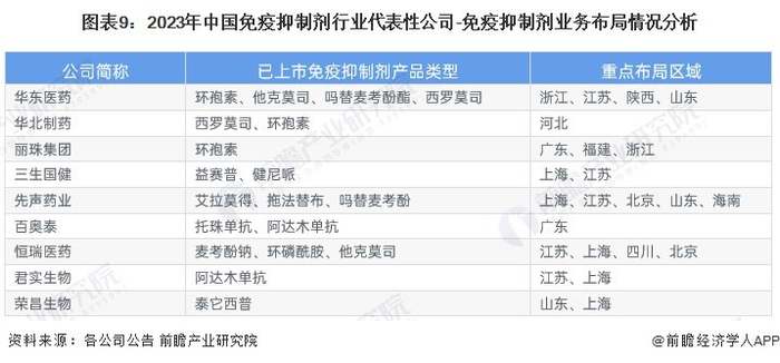 中国免疫抑制剂行业企业业务布局情况