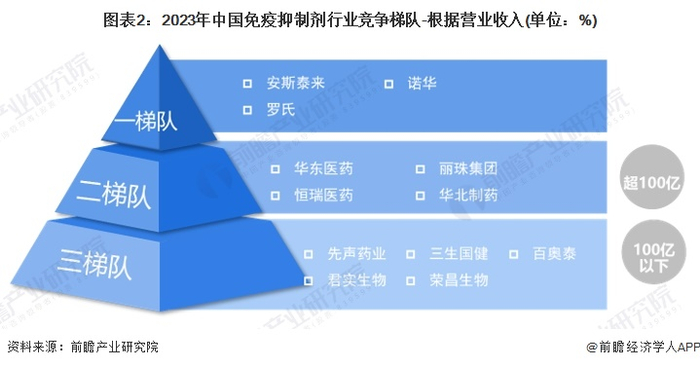 中国免疫抑制剂行业竞争梯队