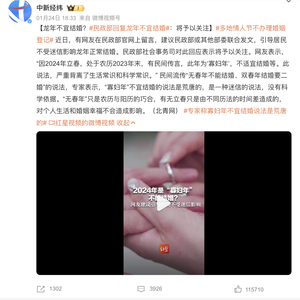 今天,热搜上冲上一条古老的民间传言:2024 年龙年是“无春年”“寡妇年”,不适宜结婚。
