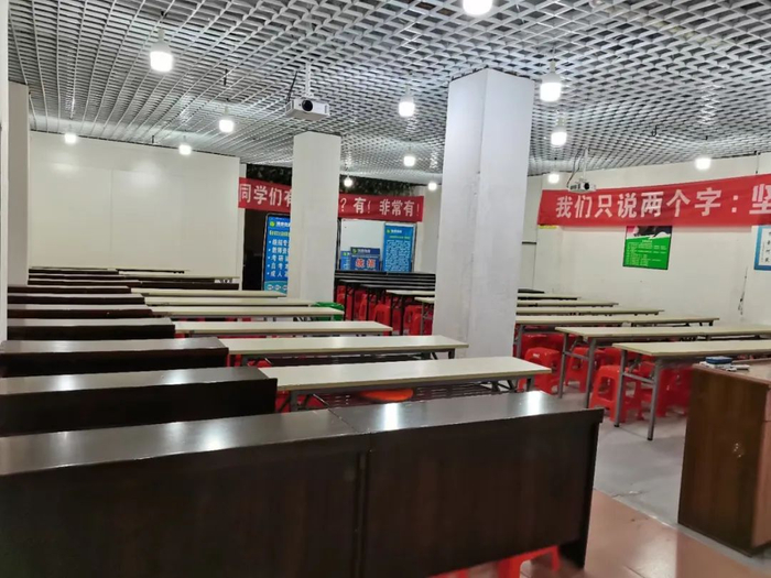 培训机构所在二楼的另一侧是宾馆烧锅炉的地方,李辉一直可以闻到对面烧煤球的味道,“味道挺重的”,为此,很多学生都提过意见。他在这里补习期间,下课后很多同学也会在教室自习。但几乎看不见老师的影子,负责人的办公室在街对面,并不经常守在教室,“过来看一眼,然后就走了。”