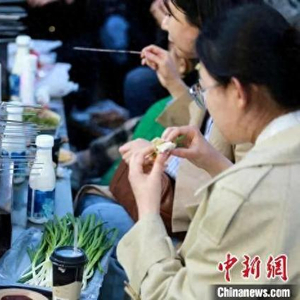 资料图:淄博烧烤火爆出圈,游客组团到淄博吃烧烤。中新社记者 梁犇 摄