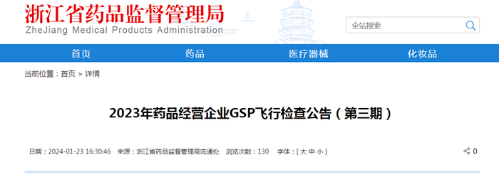 浙江省2023年药品经营企业GSP飞行检查公告(第三期)