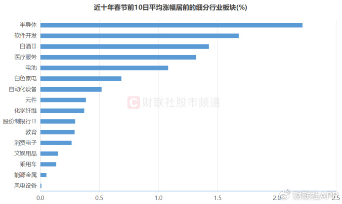 注:近十年(2014年至2023年)春节前10日平均涨幅居前的细分行业板块