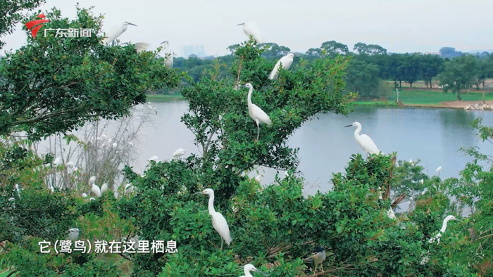 “良好的生态环境吸引了大批鹭鸟在此栖息,现在有10万只鹭鸟常驻于此。”