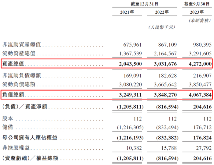 另外,2021年至2023年9月底,分年计古茗的负债总额分别为32.5亿元、38.5亿元、40.7亿元。其中流动负债分别为30.8亿元、36.7亿元、38.5亿元。数据显示,2021年和2022年古茗一直处于资不抵债的状态,到了2023年9月底状况有所好转,但负债率依然高达95%。