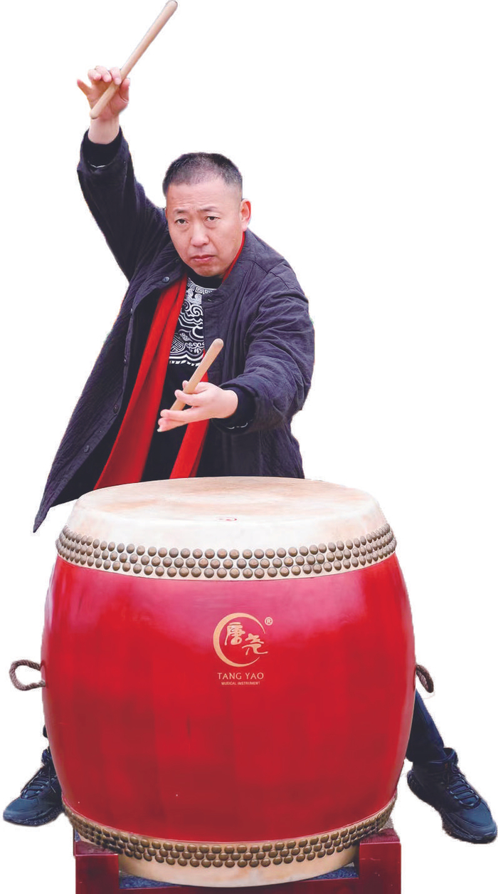 只见张勇手持鼓槌,时快时慢,时轻时重,或敲鼓面,或敲鼓边,在唢呐、快板等乐器的合奏下,一首首气势磅礴的民乐让在场的所有人听见“年味”……