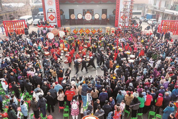 “咚咚锵,咚咚锵,咚锵咚锵咚咚锵……”1月20日午后,铿锵有力的威风锣鼓在山西临汾市泊庄村敲响,数百名乡亲邻里跟随鼓声喝彩。一场由才艺主播发起,融合传统锣鼓艺术与山西民俗风情的“村晚”拉开序幕。
