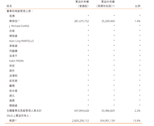 据阿里2023财年报告,截至2023年7月12日,软银持股比例已降至13.9%。由于持股比例低于15%,软银丧失了对阿里的董事提名权利。而同期,蔡崇信持有阿里1.4%的股份。马云则因为退休且持股比例低于5%,阿里自2021年后未对其持股比例进行披露。