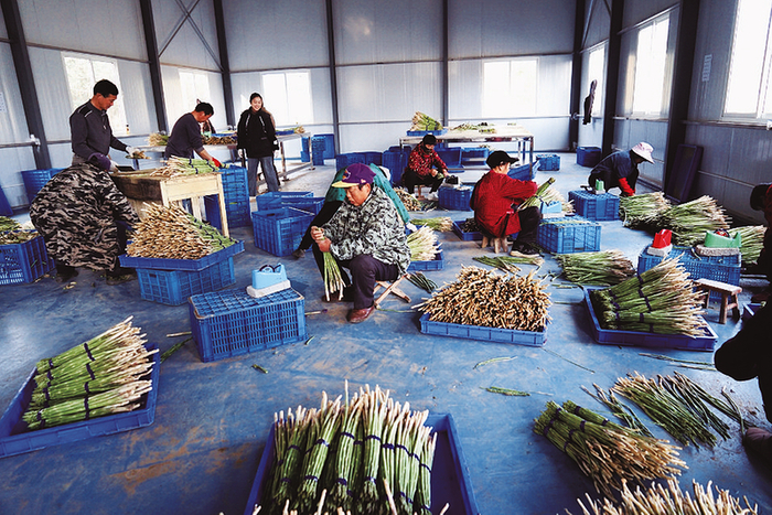 春节将至,被誉为“蔬菜之王”的芦笋进入旺盛生长期。日前,在怀宁县石牌镇安徽心族农业科技有限公司分拣车间,工人们将新鲜的芦笋进行分拣、裁切、打包、装箱……忙得不亦乐乎。一辆物流货车停在分拣车间外等待装货,数个小时后,这批4000斤芦笋就会出现在杭州各大超市门店,香飘市民餐桌。