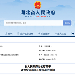 为提高低收入劳动者的收入,让广大人民群众共享改革发展成果,根据《中华人民共和国劳动法》《最低工资规定》(原劳动保障部令第21号),省人民政府决定从2024年2月1日起调整全省最低工资标准。现将有关事项通知如下: