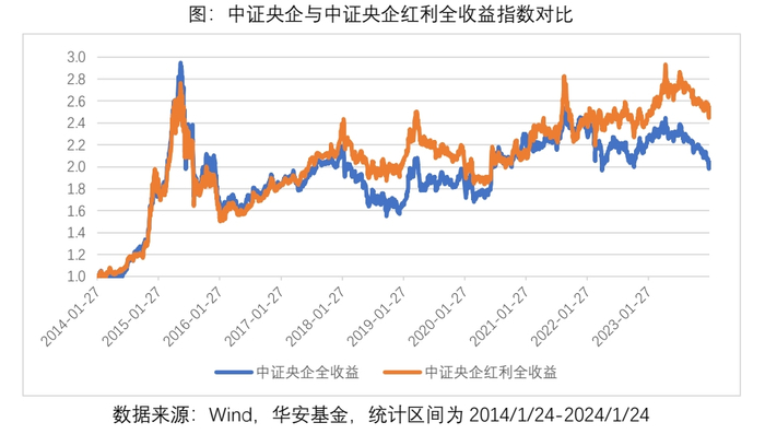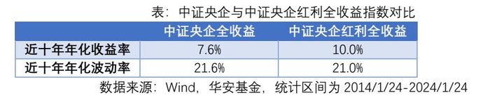 央企红利历史长期股价表现更优秀。在所有央企中筛选长期稳定高分红的央企,其往往具有基本面良好、现金流充沛、盈利能力良好、波动率较低等特点。中证央企红利全收益指数近十年的年化收益率与年化波动率均优于中证央企全收益指数,表明在央企板块应用红利策略有望获得更优投资回报。