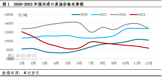 2023年国内进口菜油均价整体下滑