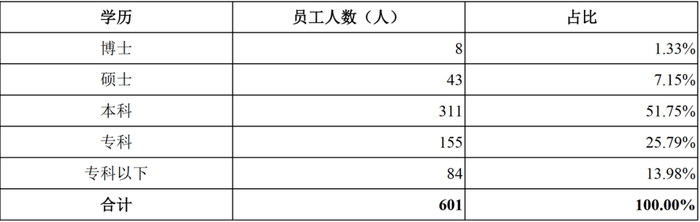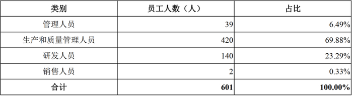 七、员工以生产人员为主、高学历员工占比较低,难以匹配科创板定位
